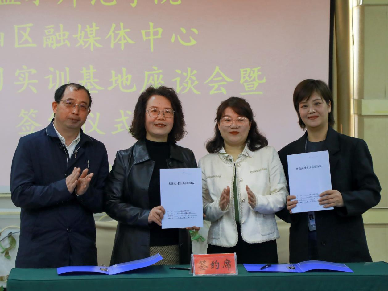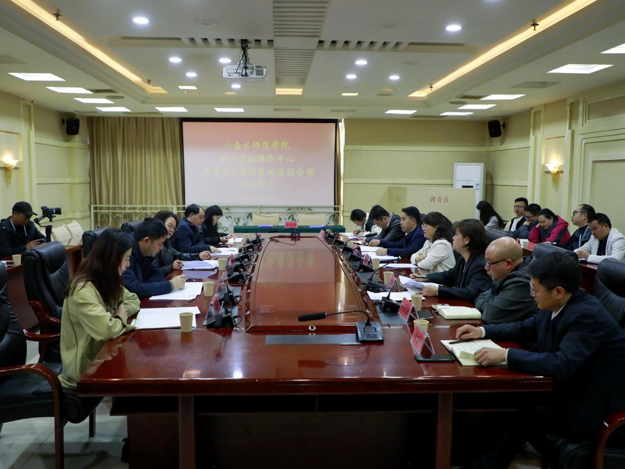 3月26日,在钟山区融媒体中心203会议室,bat365在线中国登录入口与钟山区融媒体中心举行共建实习实训基地座谈会暨签约仪式。学校副校长费虹,文学与新闻学院党委书记龙尚国、党委副书记杜云,钟山区委常委、区委宣传部部长、区委统战部部长李娟,钟山区委宣传部副部长、区融媒体中心主任张丽,钟山区融媒体中心班子成员参加签约仪式。六盘水市钟山区融媒体中心总编辑丁毅主持签约仪式。