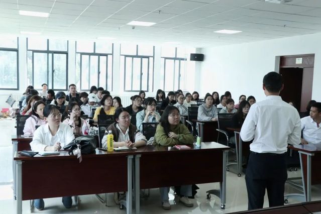 李俊威老师以《小学优质课导学能力构建策略》为题,结合自身从教经历,以小学优质课导学能力构建策略的研究成果为切入点,从活动意义、三观塑造、教育者的成长路径启示、教师教育的动态发展等多方面展开系统阐述。他希望同学们多元发展、提升竞争力,以静待花开的育人智慧实现职业价值。