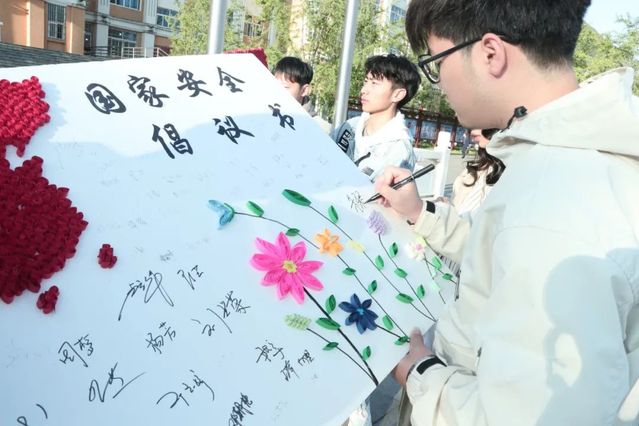 升旗仪式后,学院举行国家安全倡议书签名活动。学生代表宣读了《国家安全倡议书》,希望全体师生携起手来,牢固树立安全第一的意识,严守法律法规,不断提高自身的自我保护意识和能力。师生代表依次在倡议书上郑重签名,以实际行动表达对维护国家安全的坚定决心。