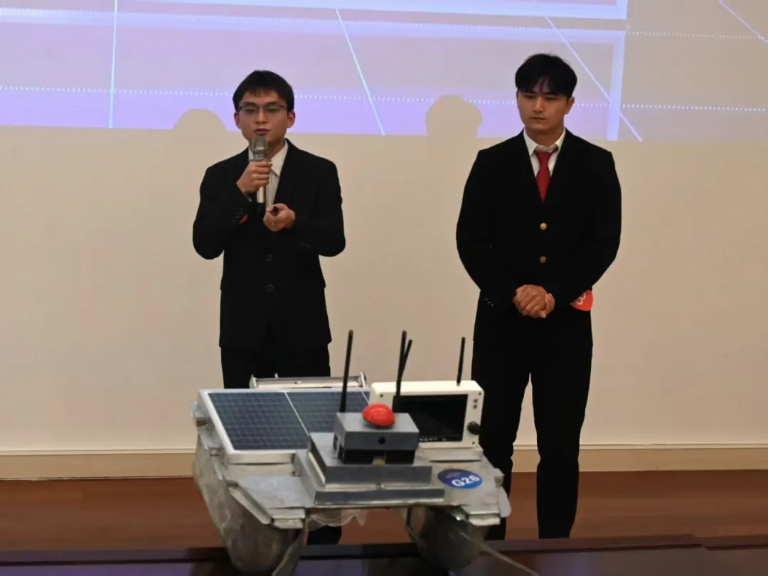 答辩环节,团队通过现场陈述和自由问辩充分展示实践、研究所得,评审专家聚焦项目科学性、先进性、现实意义等方面进行评分,对作品的创新优点以及不足之处进行点评,为作品后续优化提供学术严谨性与实践可行性的改进建议。