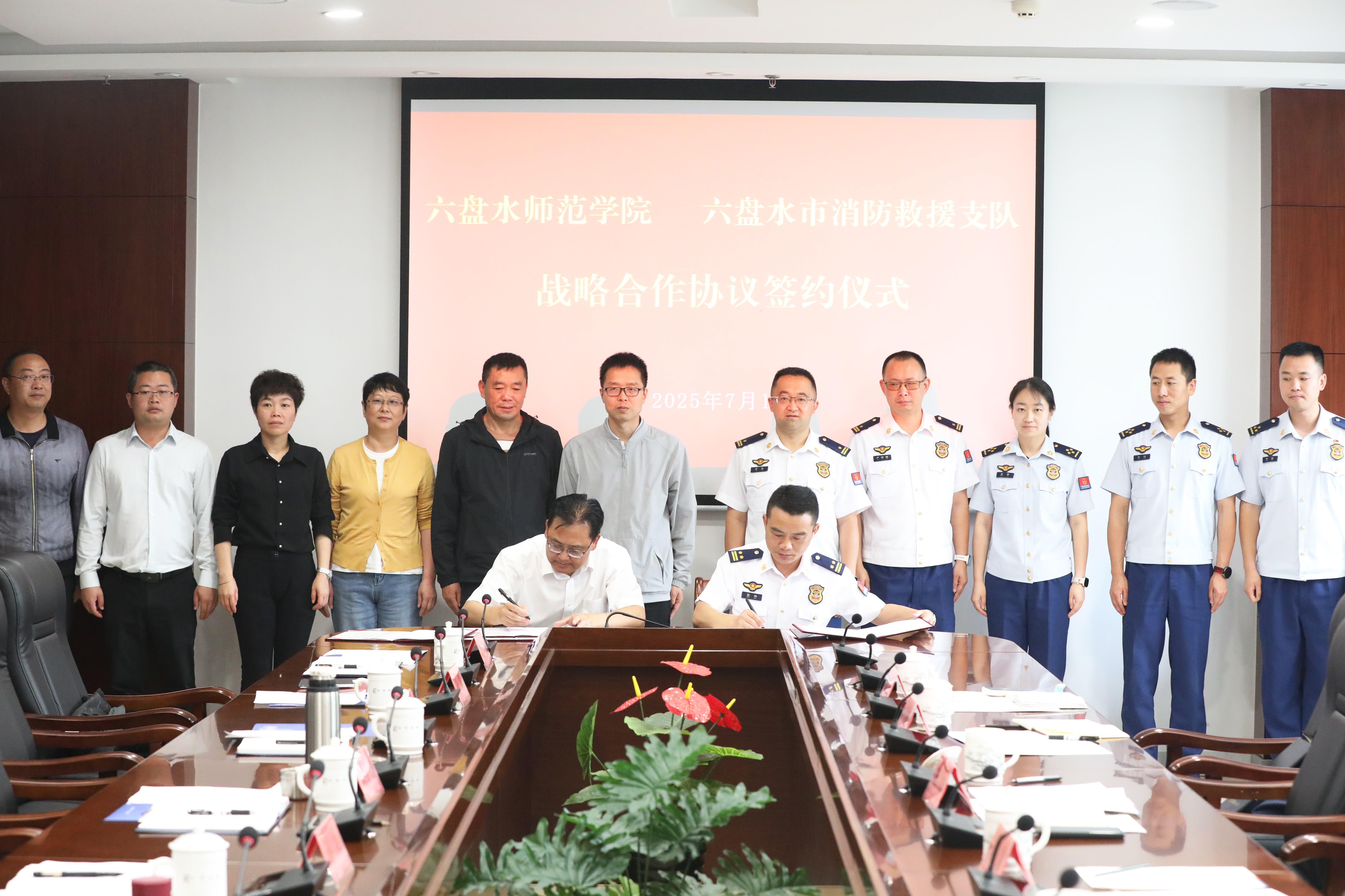 钟山区消防救援大队政治教导员卢新国,市消防救援支队业务部门相关负责人和学校党委学生工作部、保卫处、体育学院、继续教育学院相关负责人参加签约仪式。(供稿/肖力铭 徐超 编辑校对/徐超 审核/骆波澜)