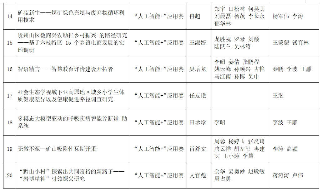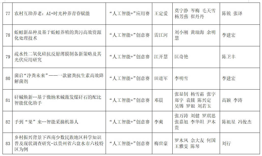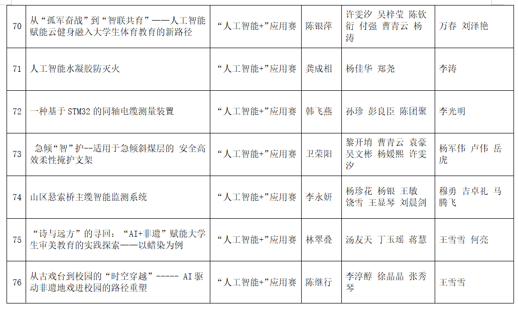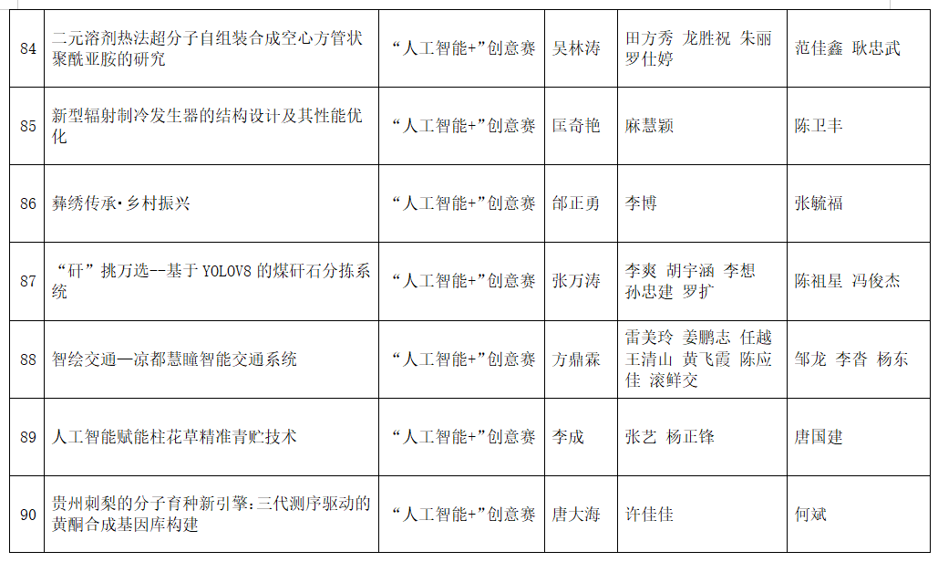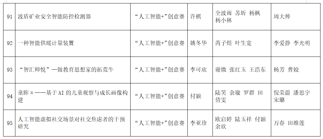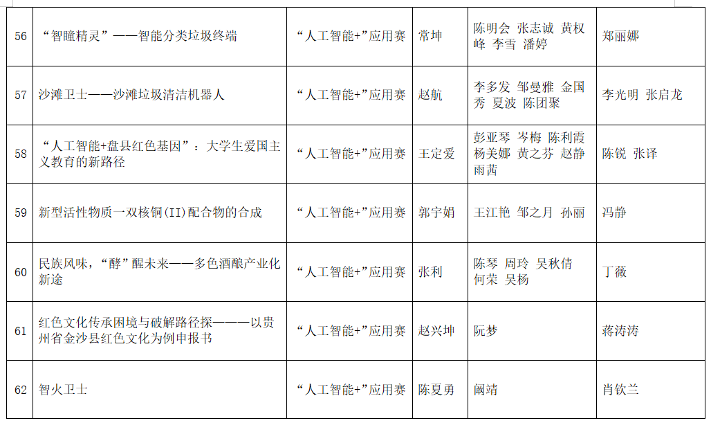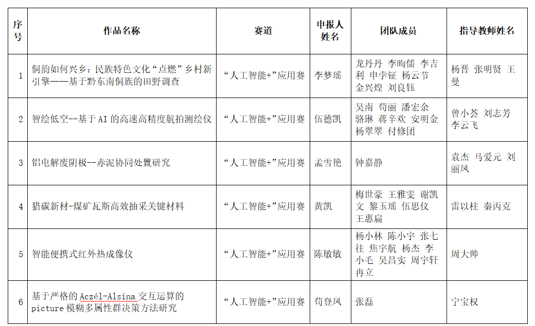 按照团省委《关于第十九届“挑战杯”竞赛“人工智能+”专项赛作品申报工作提示》相关要求,经各参赛队伍申报、校团委审核,现将拟推报参赛的项目予以公示如下: