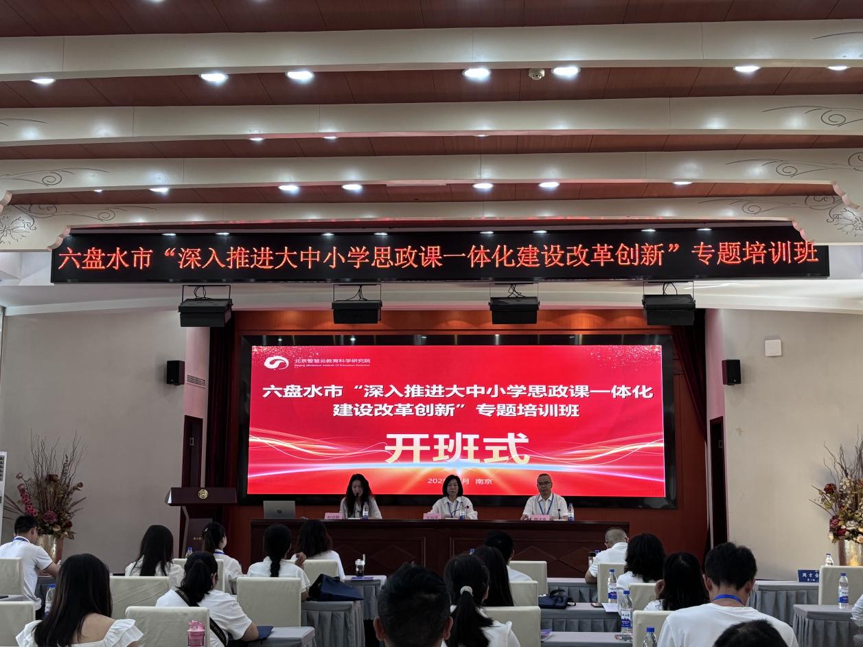 7月29日,六盘水市“深入推进大中小学思政课一体化建设改革创新”专题培训班在南京师范大学专家楼三楼报告厅开班。来自六盘水市大中小学思政课一体化共同体成员单位的43名各学段骨干教师参加。