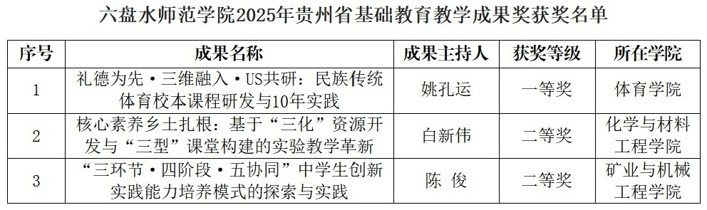 近日,贵州省教育厅公布2025年贵州省基础教育教学成果奖获奖名单,bat365在此次评选中斩获一等奖1项、二等奖2项,创下学校申报该奖项以来的历史最高获奖数量。