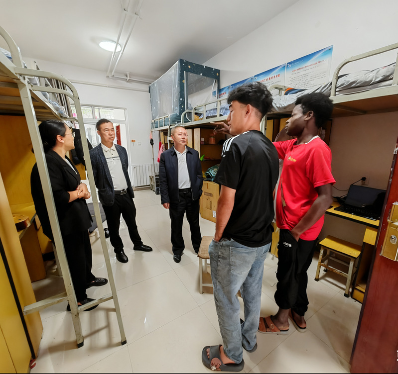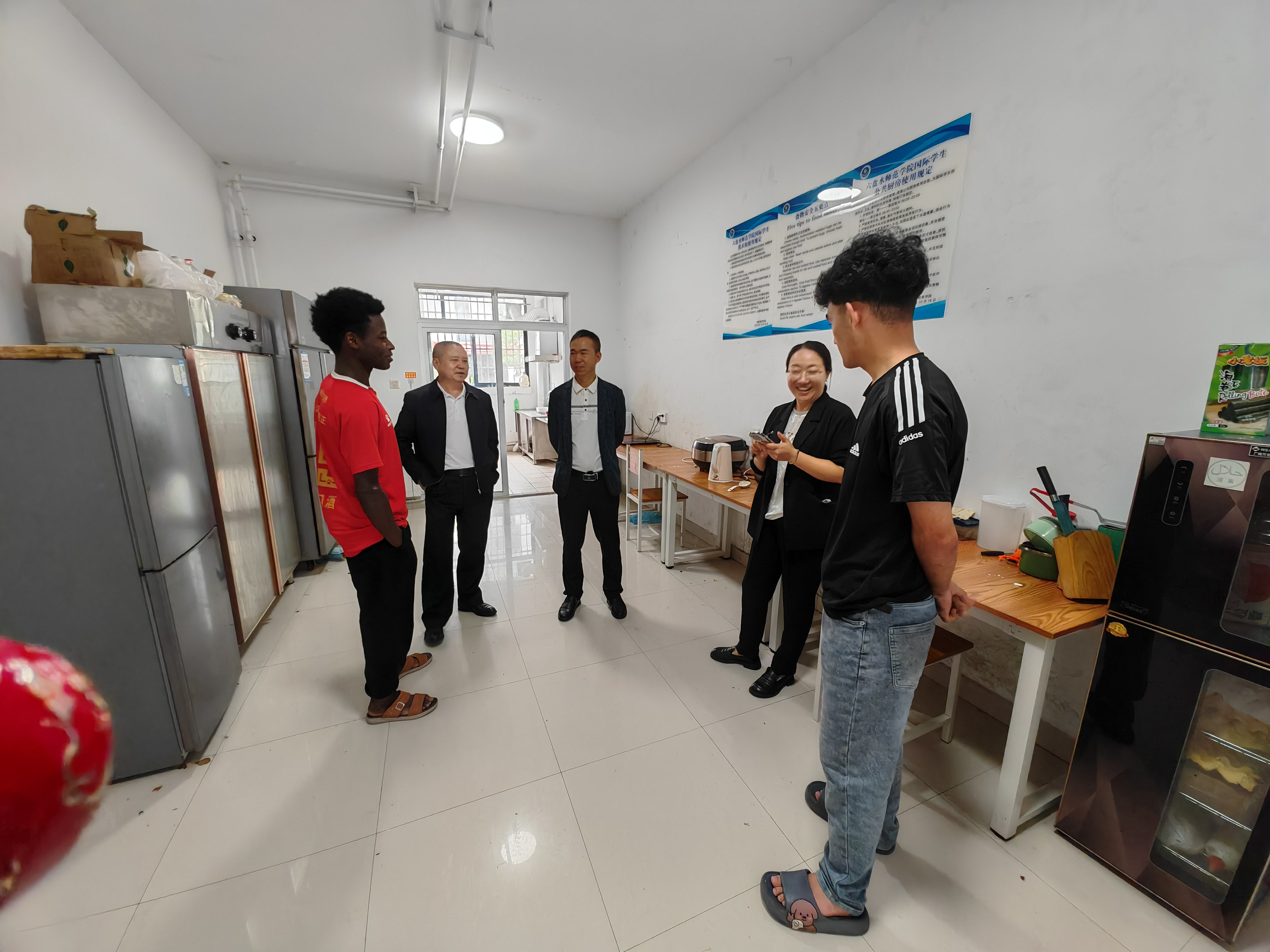 吕选周书记一行4人深入国际生宿舍,与国际生们交流,详细询问了国际生在校学习、生活等方面的情况,勉励他们努力学习。学院还为他们准备了中秋礼物,并送上了节日的祝福。