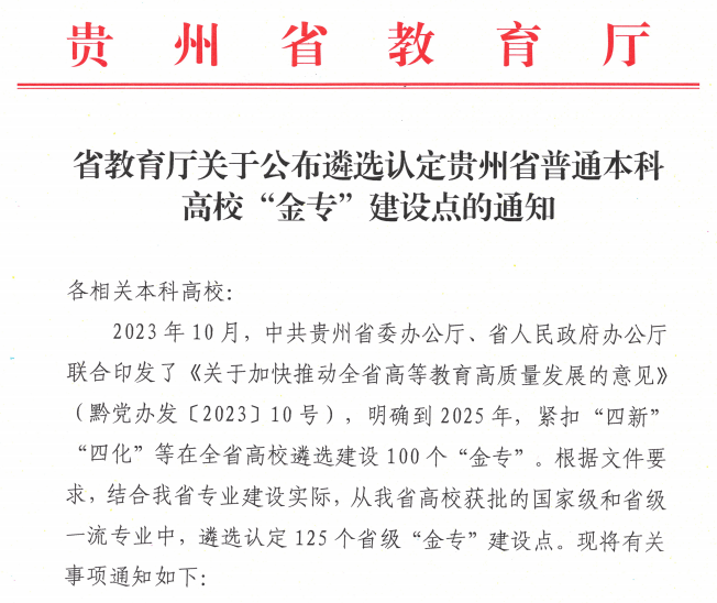 bat365入选贵州省普通本科高校“金专”建设点截图