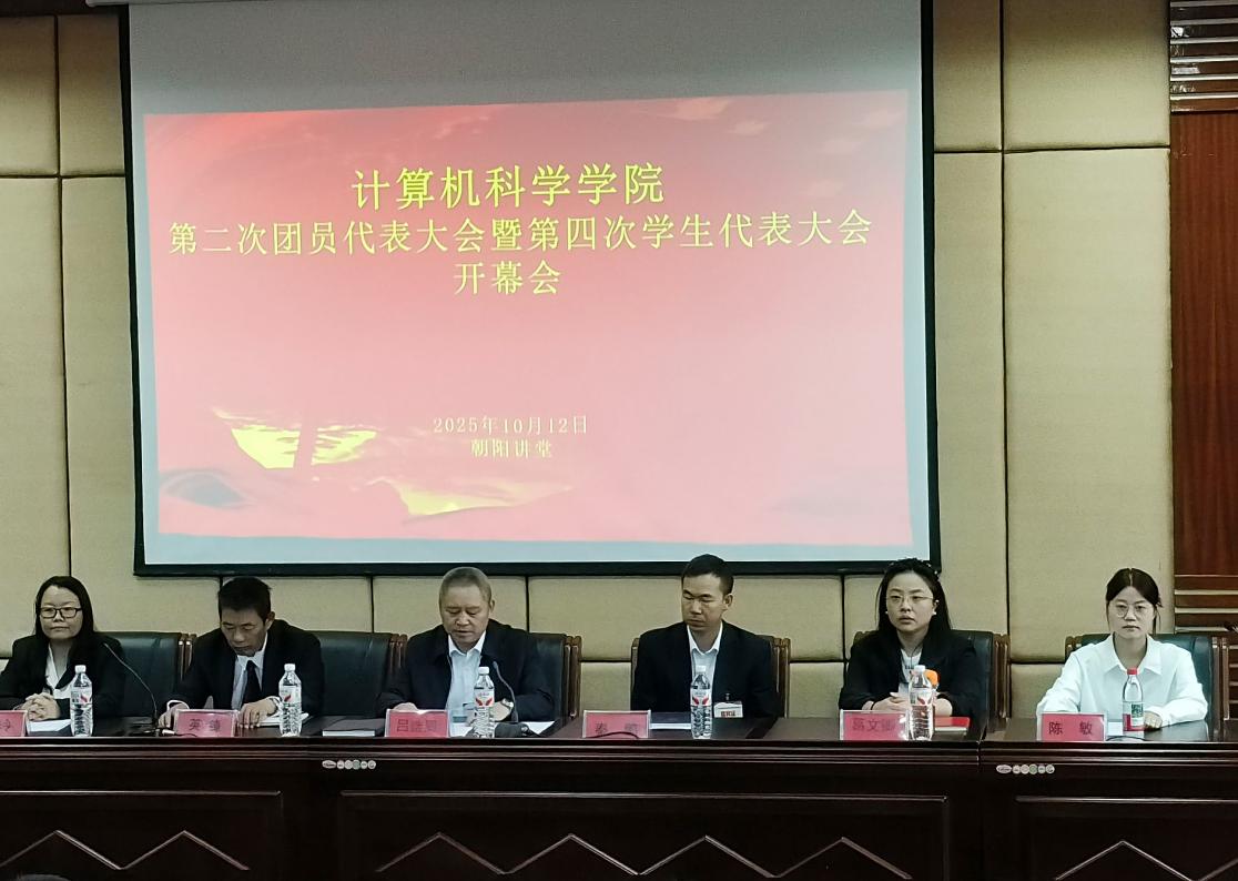 10月12日上午,计算机科学学院第二次团员代表大会暨第四次学生代表大会在朝阳讲堂召开。学院党委书记吕选周,党委副书记、院长秦鹏,党委委员、副院长英锋,党委副书记、纪委书记葛文卿,团委书记朱玲,经济与管理学院学生会主席刘敏出席会议,60名团员代表和学生代表参加会议,大会在庄严的国歌声中拉开帷幕。