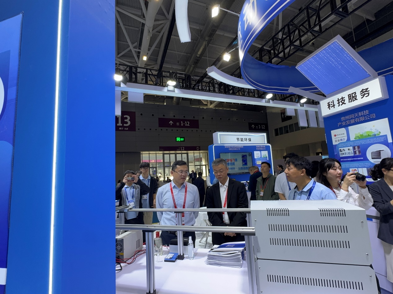 贵州省科技厅吴岸琪副厅长(中)、贵州省发改委兰青副主任(左)、杨文韬教授(右)在展会上