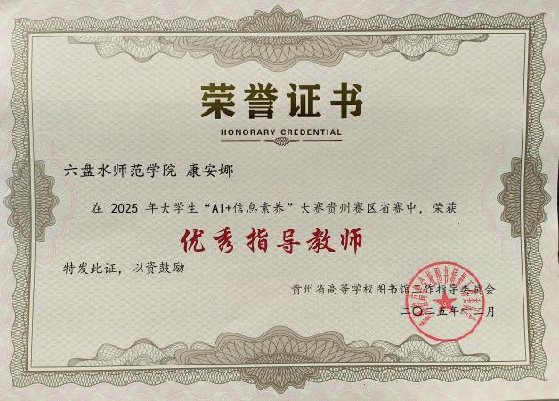 12月17日,2025年大学生“AI+信息素养”大赛贵州赛区省赛落下帷幕,bat365获得优秀组织奖,来自计科、数统、矿机学院的杨娅、彭南峰、熊庭志三名同学组成“智联矿数小队”,经过学校选拔赛、省赛淘汰赛、省赛决赛,凭借项目《AI赋能视角下大学生期末复习的效能转化路径研究》荣获省赛本科生组三等奖,指导教师康安娜副研究馆员、张小东副教授获“优秀指导教师”称号。