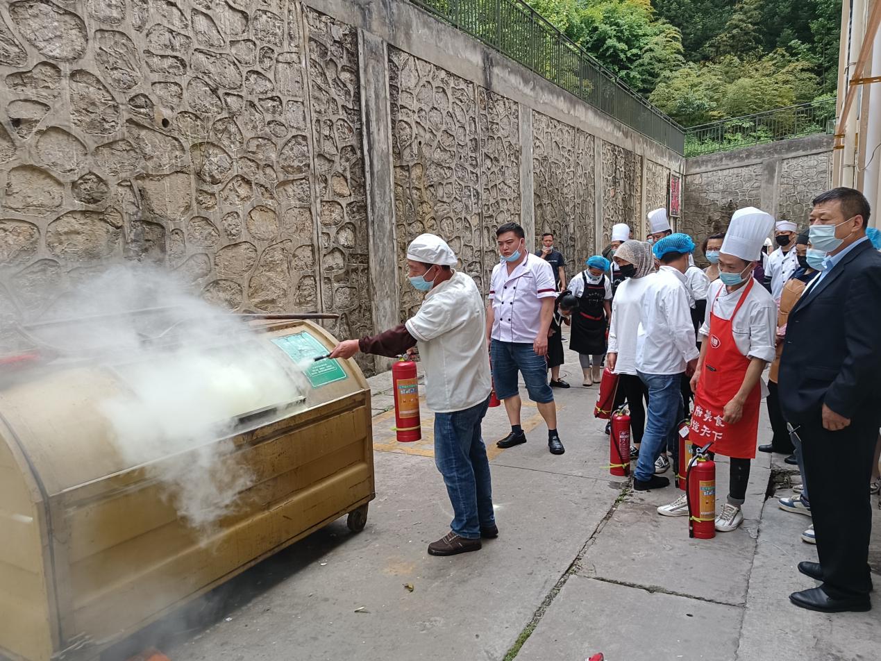 首先,学校后勤服务中心膳食科科长柯贞员针对4月27日市教育局检查发现的问题,开展食品安全培训,提出具体工作要求。保卫处应急科消防办主任刘洪勇同志分析了食堂火灾发生的原因,对消防安全基础知识及注意事项,对灭火毯、灭火器等灭火器材的使用方法进行了讲解,随后,到中心食堂一楼后空地进行了实际操作演练。