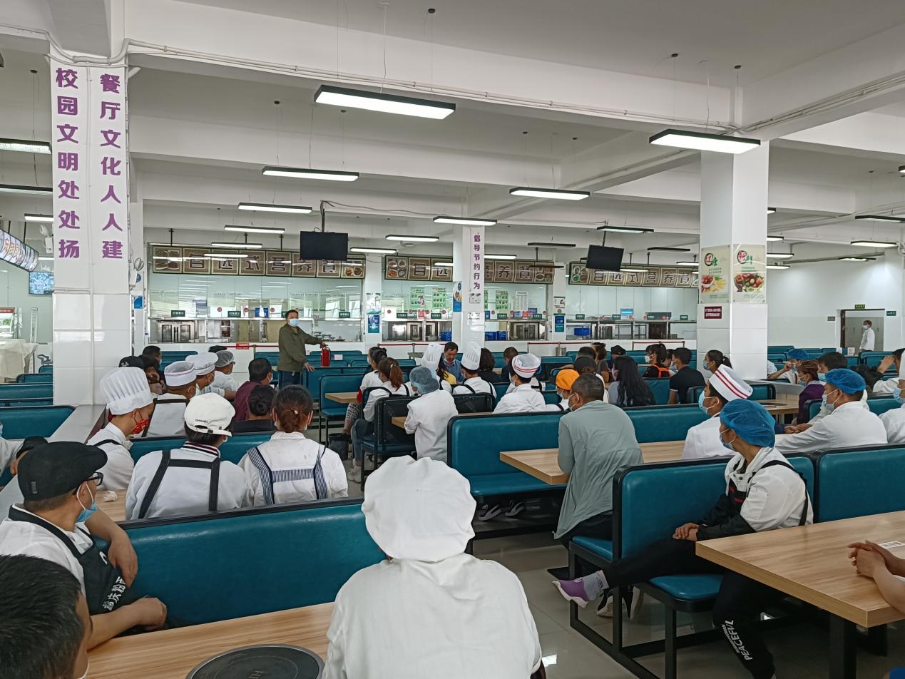 为吸取4月17日朝阳食堂三楼自助餐厨房油锅过热引发火灾事件教训,落实学校消领办的整改要求,增强食堂工作人员的食品安全意识,学习消防安全知识,掌握灭火器材的使用技能,后勤服务中心于4月28日在朝阳食堂对所有食堂工作人员开展食品安全培训,同时,保卫处应急管理科对其开展消防知识安全培训和灭火器材使用技能培训。