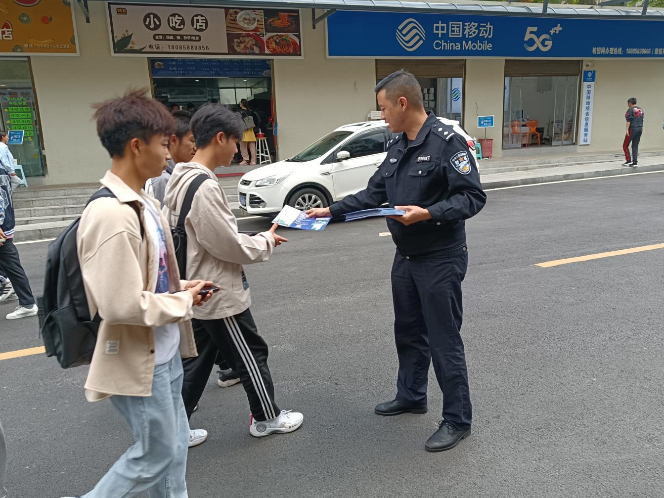 之后,恰逢学生放学,六盘水市公安局钟山分局、明湖社区和bat365保卫处同志向路过师生发放反诈宣传传单,指导国家反诈中心app安装及使用方法。(供稿/张艳军 编辑校对/陈士文 审核/余征)