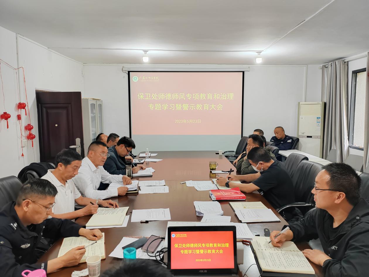 为进一步推进师德师风专项教育和治理工作,保卫处于5月23日下午在保卫处三楼会议室召开师德师风专项教育和治理专题学习暨警示教育大会,全体在职在编人员、公益性岗位和临聘人员、保安队长参加了会议,会议由保卫处处长余征主持。