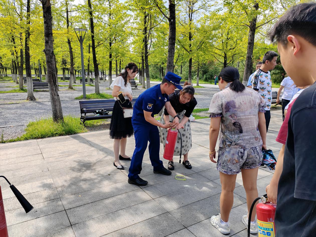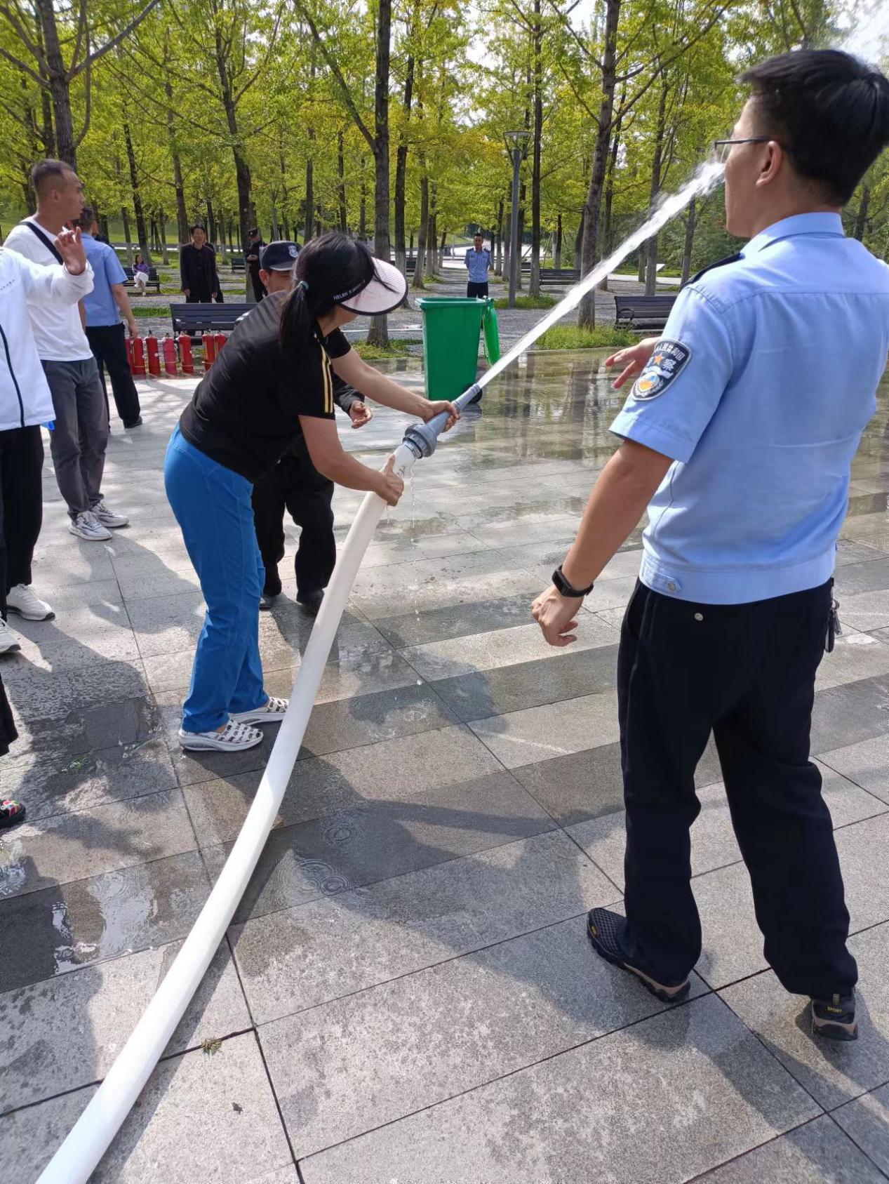 讲座结束后,钟山区应急消防救援特勤中队相关同志指导所有参训人员在知行广场进行了灭火器、消防水枪等器械的实操训练。