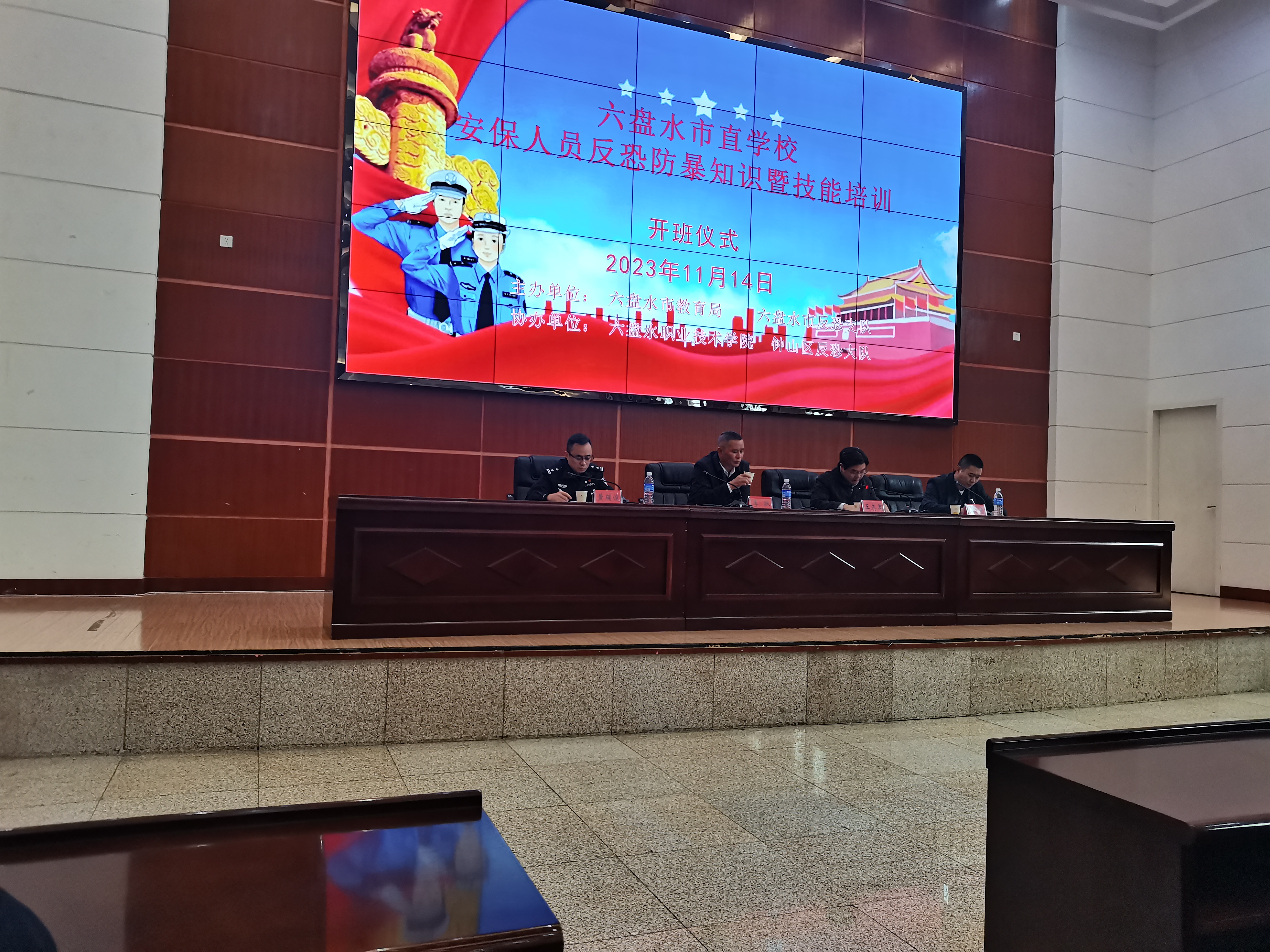 为增强学校安全管理人员反恐法意识和安保队伍的反恐防暴技能,提升突发事件应急处置能力,切实保障师生人身安全,市教育局于11月14日至15日在六盘水职业技术学院开展为期二天的安保人员反恐防暴技能培训,bat365在线中国登录入口60名安保人员积极参加了本次培训。