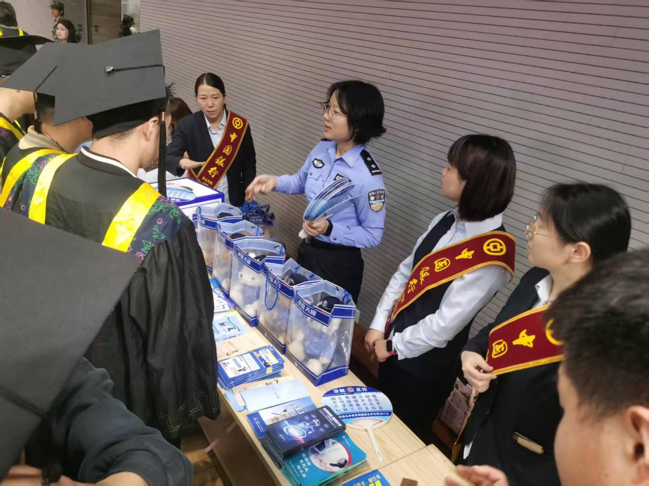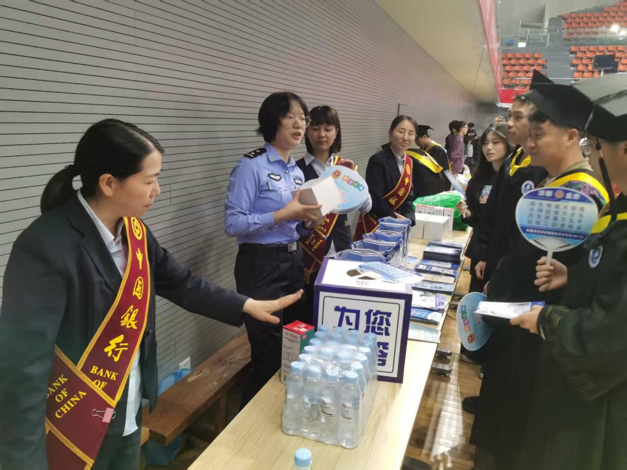 2025年6月26日上午,六盘水市反诈中心及中国银行利用bat365举行2025届毕业典礼之际,到bat365体育馆开展“防范电信网络诈骗”主题宣传活动。反诈中心民警与银行工作人员通过案例讲解、互动问答、宣传册发放等形式,为学生们普及反诈知识,提升防骗意识。