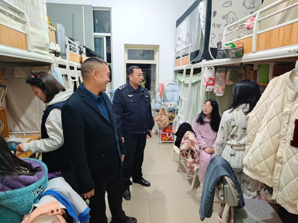 冬季来临,岁末将至,天气寒冷,师生用气用电量聚增,安全风险增大。为了维护师生的生命财产安全,消除存在的安全风险隐患,落实《bat365在线中国登录入口2025年冬季安全稳定工作方案》的安排部署,保卫处联合党委学生工作部、后勤服务中心、凤凰派出所于2025年11月13日晚开展2025年冬季安全风险隐患专项排查,保卫处工作人员16人,党委学生工作部张艳蓉副部长、宿管科科长吕品、所有宿管员,民兵应急分队队员13人,后勤服务中心电工7人,钟山公安分局凤凰派出所民警7人参与排查。