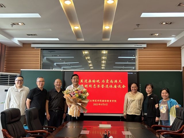 2023年9月8日,继续教育学院在勤勉楼501会议室为孔德明同志举办了简朴、温馨的退休座谈会,送去了衷心的感谢和祝福。