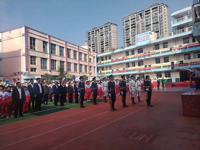 为积极响应国家关于加强国防教育和爱国主义教育的号召,5月26日早晨,继续教育学院党支部全体党员和学校国旗护卫队走进六盘水市水城区红湖学校举行升旗仪式。