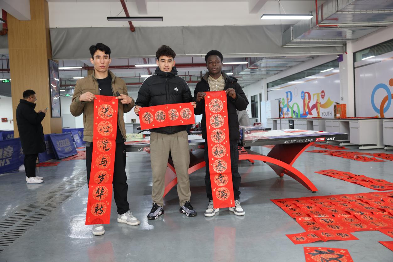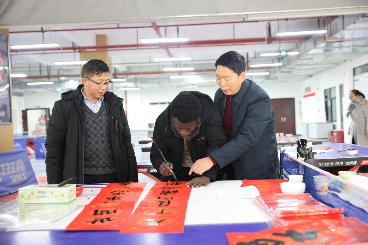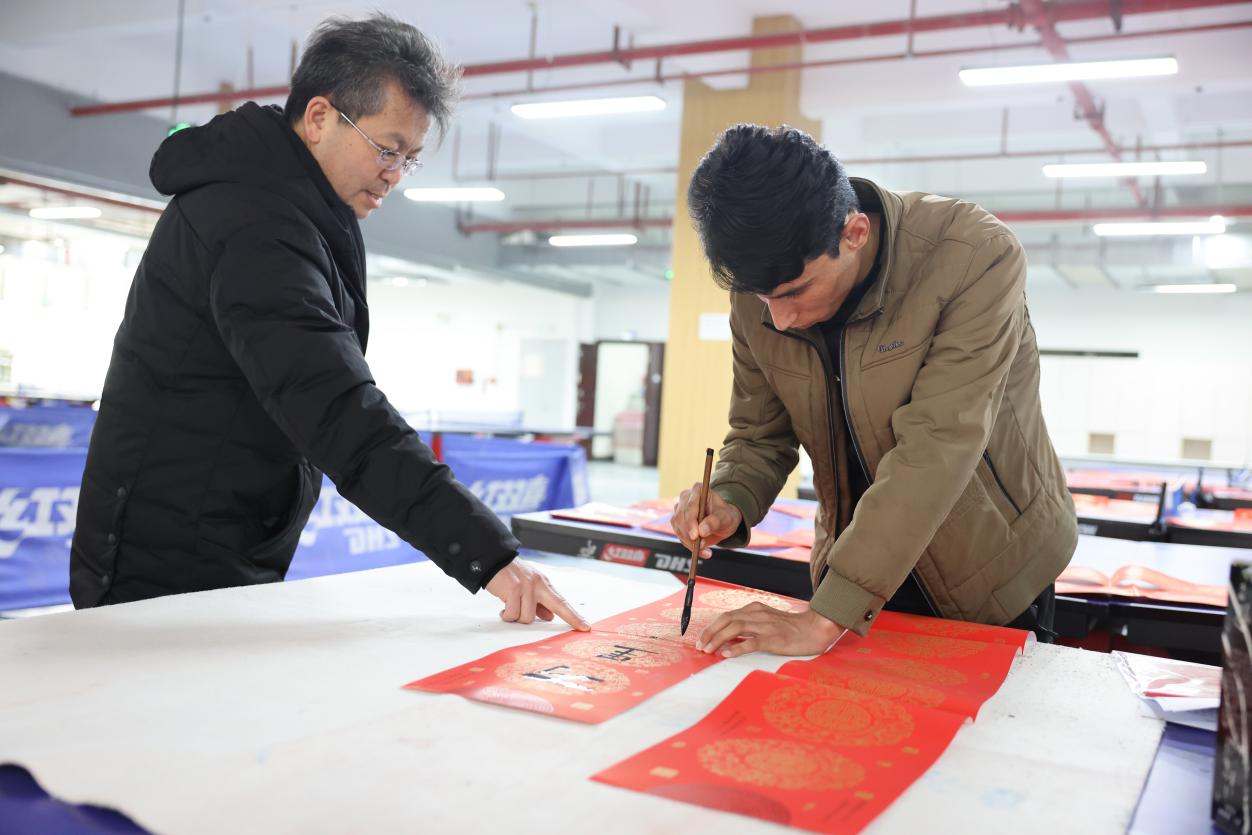 为了让国际学生深入体验中国传统文化魅力,增进对中国春节习俗的了解,1月9-11日,学校组织寒假留校国际学生在“教工之家”开展乙巳年“写春联·送祝福”活动。书法老师从春联的历史渊源、文化内涵、书写特点到正确握笔、字形结构、整体布局,讲解得全面细致,还现场展示了春联的书写技巧,让国际学生对春联这一中国传统民俗艺术有了初步认识。在老师的耐心指导下,国际学生逐渐掌握了书写要领,“福”“春”“吉祥如意”等蕴含着美好寓意的汉字在他们的笔下诞生,略显生硬的笔划饱含着他们对中国文化的探索和对新年的美好祝愿。来自阿富汗的留学生罕米德兴奋地说:“我一直对中国文化非常感兴趣,这次能够亲手写春联,感觉特别神奇。虽然写起来有点难,但当看到自己写出的春联,真的很有成就感。我要把它带回去,贴在房间里,感受中国新年的氛围。”来自乍得的留学生哈桑则表示:“通过这次活动,我不仅学会了写春联,还结识了很多中国朋友,大家一起交流学习,非常开心。这是一次难忘的经历,让我更加期待在中国的生活。” 国际学生们带着满满的收获和对新年的美好憧憬,期待着在中国度过一个欢乐、祥和的春节。此次“写春联·送祝福”活动,不仅是一次跨文化体验活动,也成为学校推动中外文化交流的有效举措和特殊纽带。