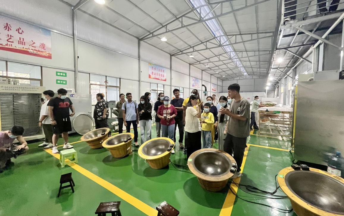 International youth visiting Tea Garden, experience tea-making technology