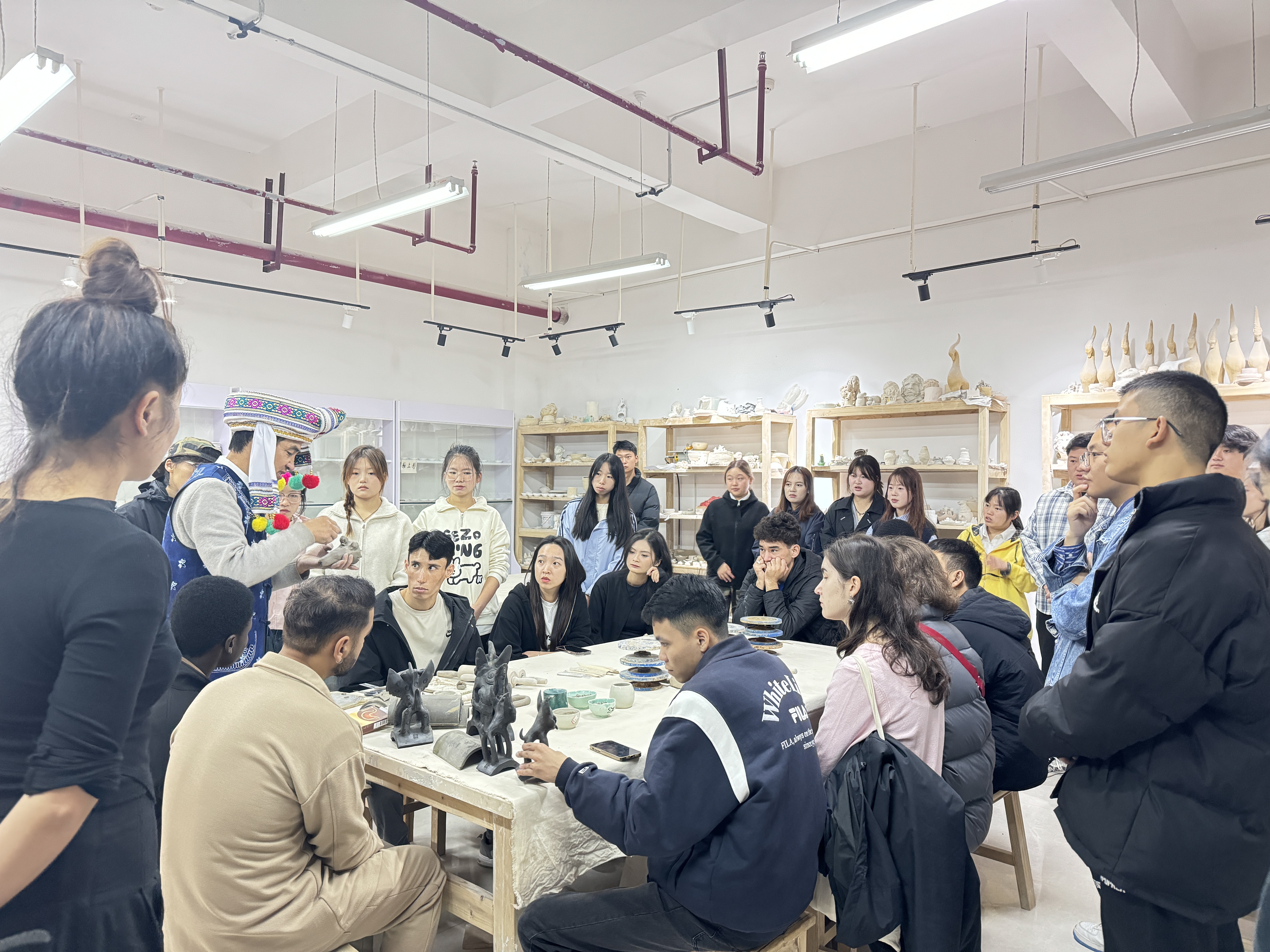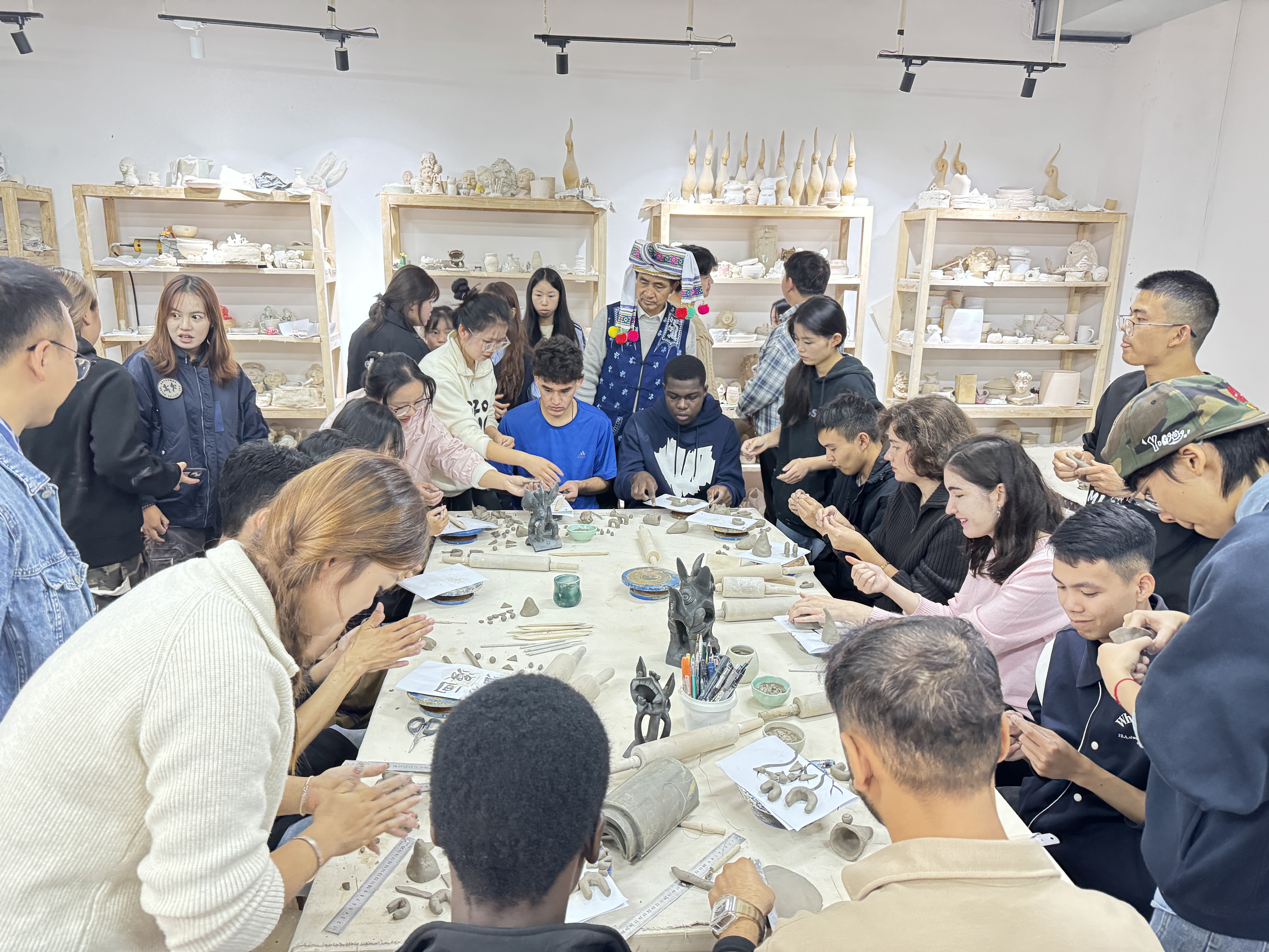 On October 13, 12 international students from Russia, Vietnam, Afghanistan, Turkey, Ghana, Chad were invited to Liupanshui Vocational and Technical College to participate in the Experience of Chinese Excellent Traditional Culture Exchange Activity-Black Pottery Craft Production.
