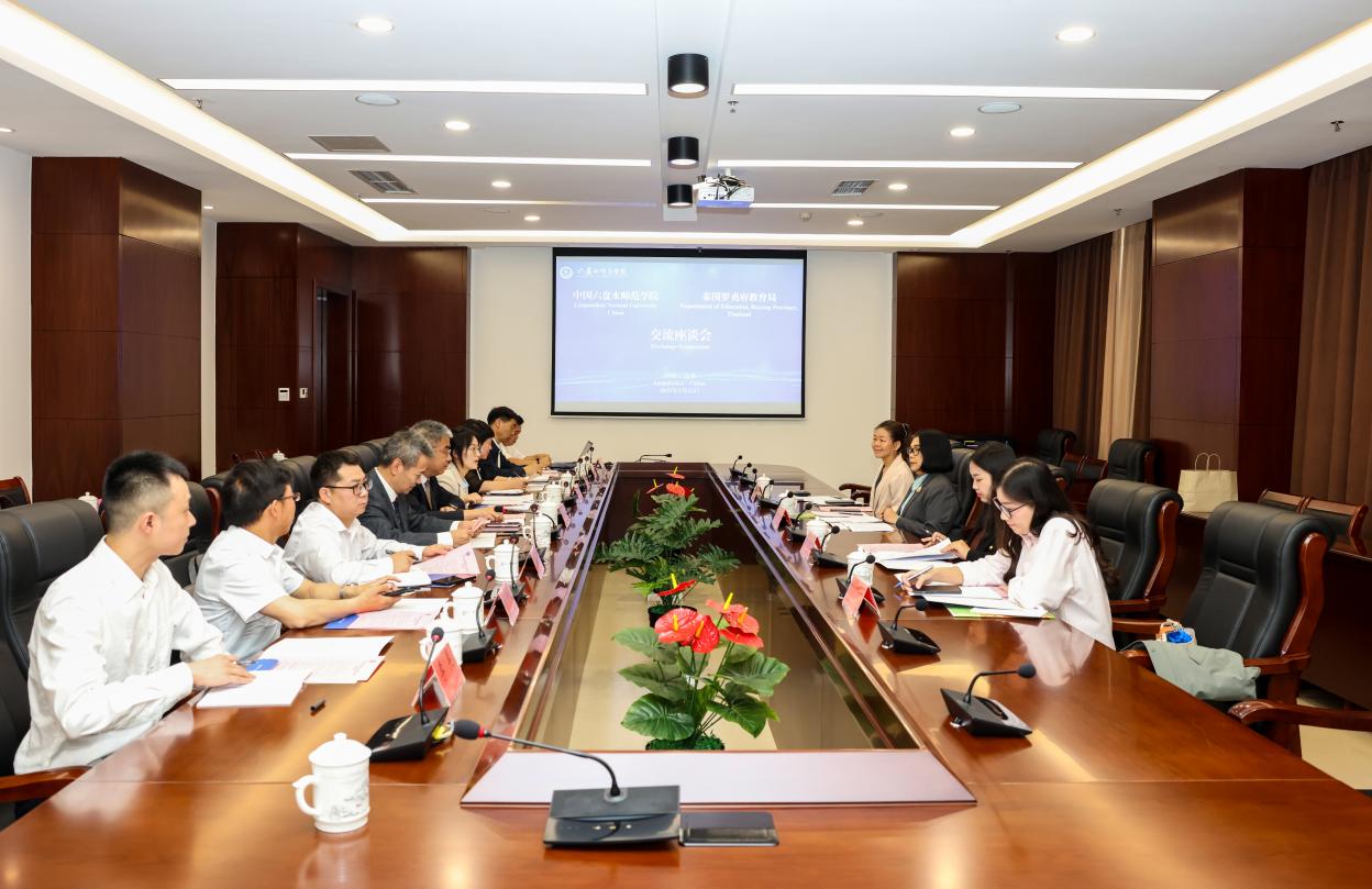 Director Nansaporn Ninarun expressed sincere thanks to the university for its warm reception and careful arrangement. She briefly introduced the development of education in Thailand, analyzed the demand for talents driven by Thailand's economic and social development, and hoped that both sides would deepen cooperation in teacher training, exchange and study between Chinese and Thai students, so as to continuously improve the level of teacher team construction and the quality of talent training. Participants conducted in-depth exchanges on Chinese teaching, cultural exchanges, industrial development and other aspects. Relevant comrades from the Liuzhi Special District Government introduced the complementarity between Liuzhi's economic and social development and that of Rayong Province, and put forward the initiative of establishing international friendship cities.