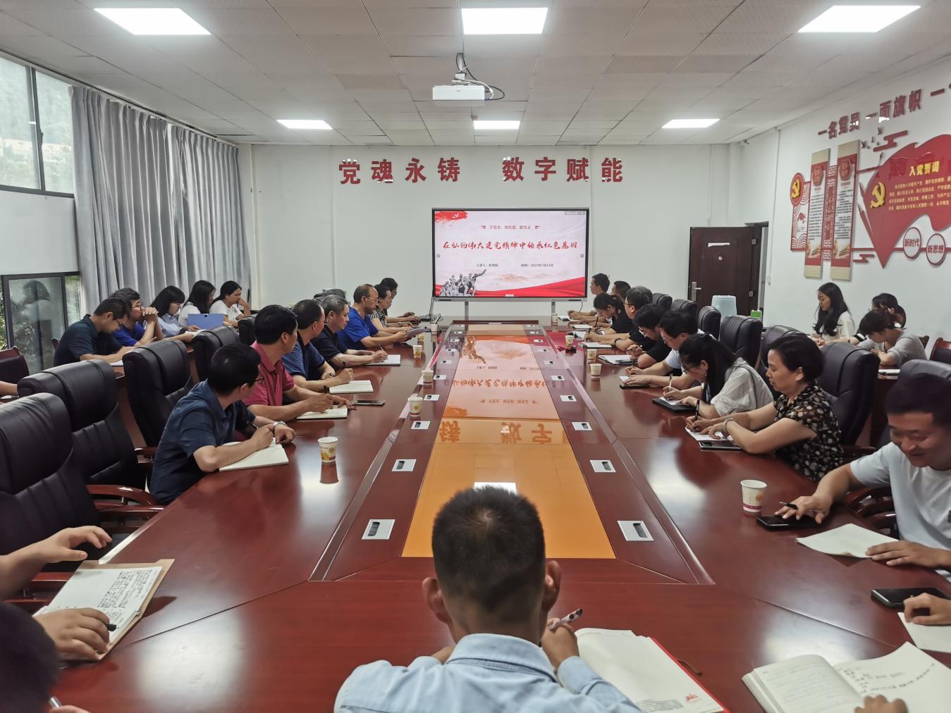 为深入学习贯彻党的二十大精神,学深悟透习近平新时代中国特色社会主义思想,庆祝中国共产党成立102周年,追忆红色印记、汲取信仰力量。7月11日,学校党委委员、副校长程绪权在智学楼二楼会议室以“在弘扬伟大建党精神中传承红色基因”为题作专题党课,会议由质评处党支部书记唐治梅主持,质评处党支部、人事处党支部、现代教育技术中心党支部、后勤服务中心党支部、计算机科学学院教工党支部、经济管理学院教工党支部党员、发展对象及入党积极分子参加。