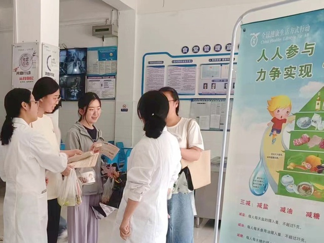 内容:学校校医院工作人员以“健康体重”为科普重点,在食堂现场给学生讲解“低盐、低油、低糖”健康饮食,通过膳食宝塔对学生在合理膳食、营养搭配、科学运动等方面开展精准科普,促进健康意识的提升。
