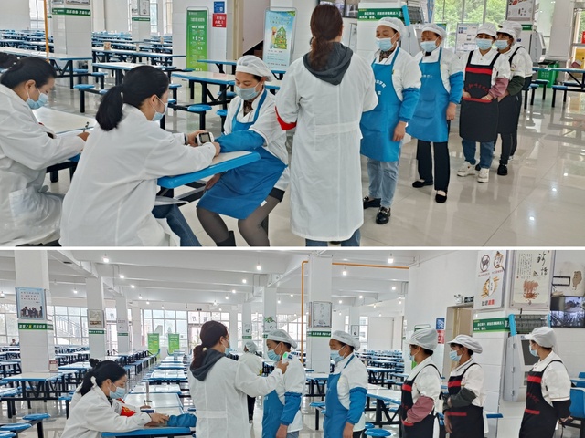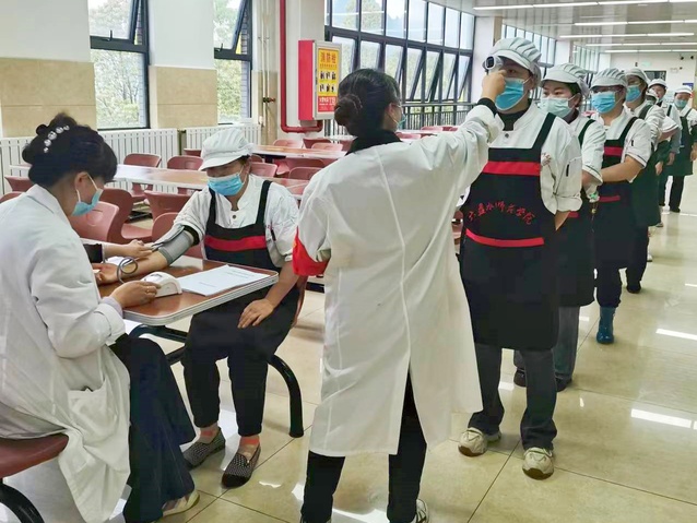 内容:饮食及商业服务部严谨执行食堂员工晨间健康筛查,力保员工健康上岗,无恙服务,同时严密监测个人卫生状况,为师生营造安全、放心的就餐环境。
