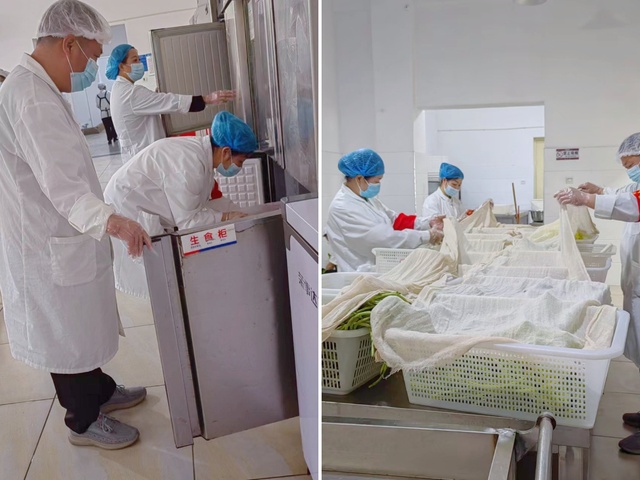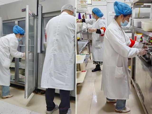 内容:饮食及商业服务部组织工作人员对校内食堂的食品安全卫生进行检查,重点针对原材料的储存条件、食物的新鲜程度、标记标签规范使用等进行详细检查。
