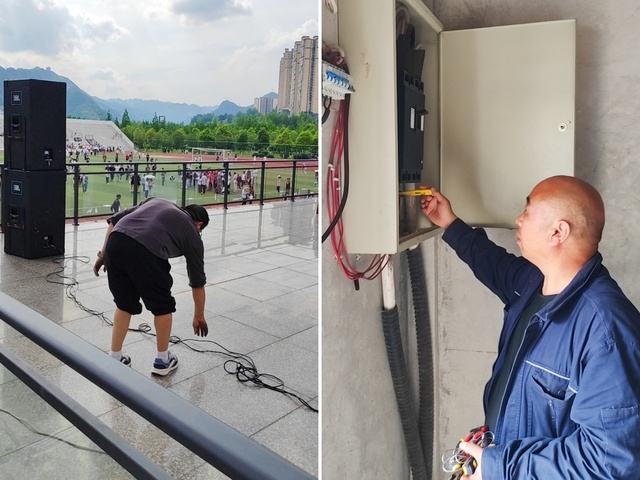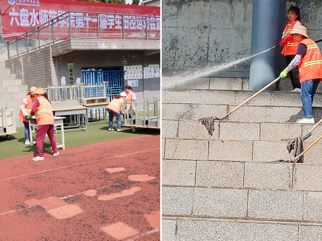 内容:为做好校运会的前期保障工作,后勤服务中心积极行动,组织保洁工作人员对田径场内的环境卫生进行了深度清扫,确保为师生们提供一个整洁、舒适的竞赛环境。同时,为确保比赛顺利进行,对需要供电保障的设备也进行了周密的电力接入工作,为校运会的圆满举办奠定了坚实基础。