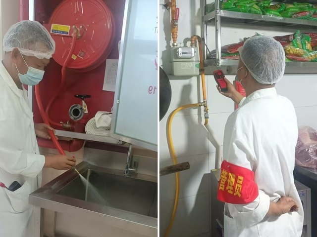 同时,为了保障师生的安全,工作人员对食堂的消防设施进行了全面排查与测试,确保每一个消防设备都能迅速响应,有效应对突发情况。同时,对燃气设施进行了细致的检查,从燃气管道到燃气用具,每一个细节都不放过,确保燃气使用的安全性与稳定性,为师生提供一个干净、整洁、安全的就餐环境。
