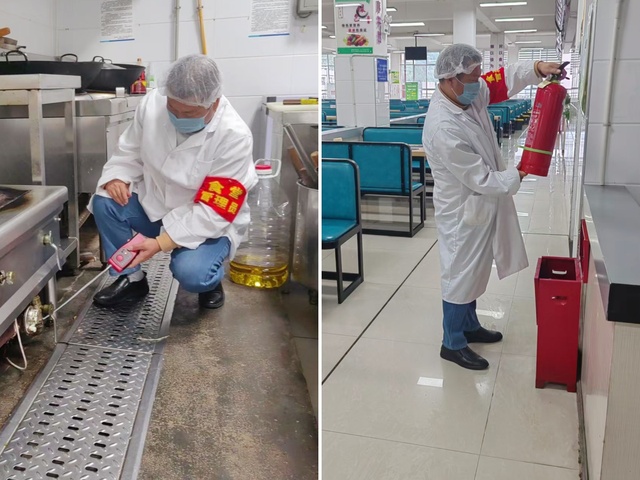 内容:饮食及商业服务部组织工作人员对食堂内部的消防设施和燃气安全进行全面细致的检查,确保为师生提供一个安全、可靠的就餐环境。