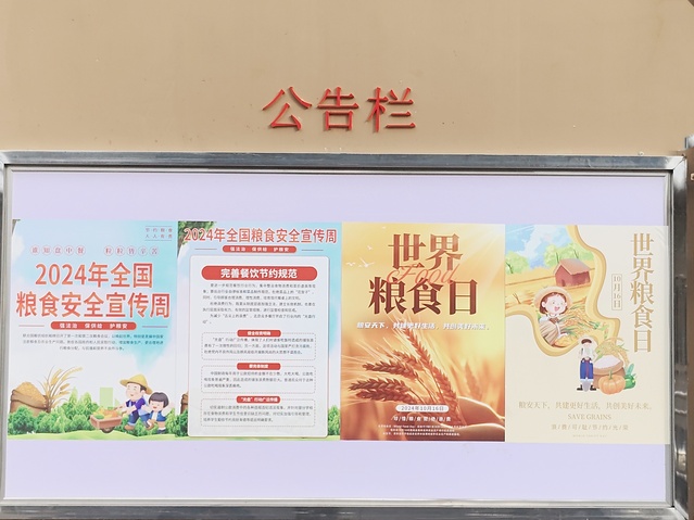 内容:后勤服务中心围绕“关注食品安全·杜绝食物浪费”主题,成功举办了粮食安全宣传周宣传活动。通过在显眼位置张贴宣传海报,并结合食堂管理员的现场指导,吸引了众多师生的关注。此次活动增强了师生的粮食安全意识,形成了节约粮食的良好风气。后勤服务中心将继续加强食品安全管理,倡导节约理念,为师生提供更安全、健康、环保的餐饮服务。
