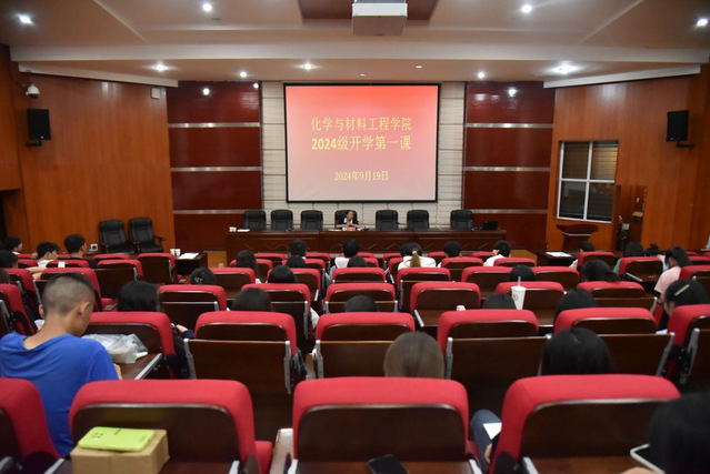 9月19日晚,化学与材料工程学院党委书记王毅红在博学楼知行讲堂为2024级新生讲授“开学第一课”。
