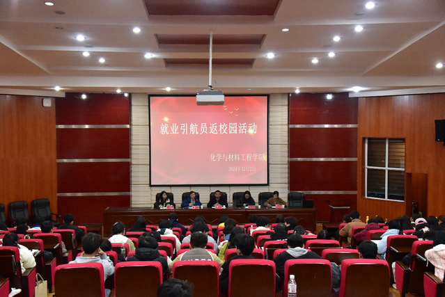 为帮助在校学生树立正确就业观、择业观,明晰职业发展方向。12月2日晚,化学与材料工程学院在博学楼117知行讲堂举行就业引航员返校园活动,200余名同学参加了活动。活动由学院团委书记、学生科科长王蒙蒙主持。