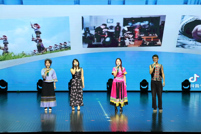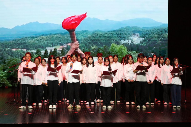 院团委与易班工作站联合呈献的诗朗诵《月光下的中国》,以铿锵语调与深情演绎,抒发了对祖国的热爱,赢得了台下阵阵热烈掌声;2023级化学工程与工艺专业学子带来的《少数民族歌曲串烧》,融合多民族音乐元素,悠扬歌声中尽显民族文化的独特魅力,为晚会增添了一抹绚丽的色彩。