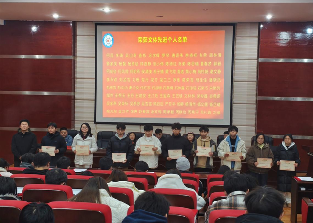 大会表彰环节,参会教师分别宣读了本年度受各类表彰学生名单,并为受表彰学生颁发荣誉证书。随后,获奖学生代表上台发言,分享了自己在成长过程中的亲身实例和思想感悟。最后,副院长袁杰在总结讲话中对受表彰同学表示祝贺,同时为2025级学生提出要向榜样学习和成长成才建议。