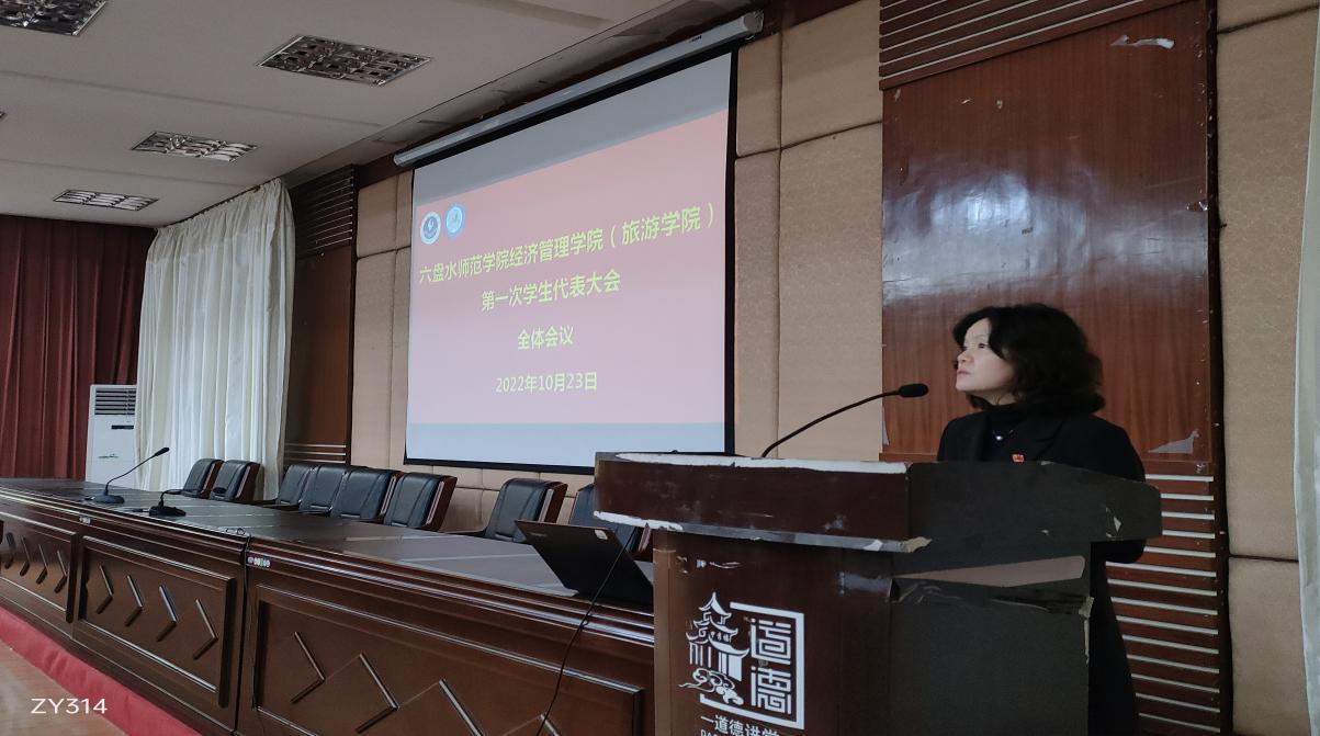 10月23日上午,我院在智学楼三楼朝阳讲堂召开第一次学生代表大会。学院党委书记蔡静出席并讲话,会议由学生会成员张艳主持。