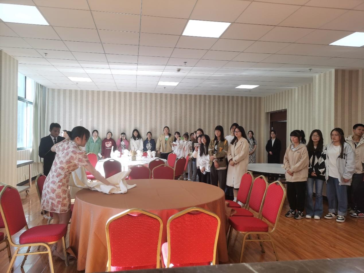 为了让2022级新生更加深入地了解我系实训室、实训设备、教学环境,培养专业学习兴趣和目标,11月27日下午,旅游管理系组织67名新生参观了旅游管理系六大实训室。