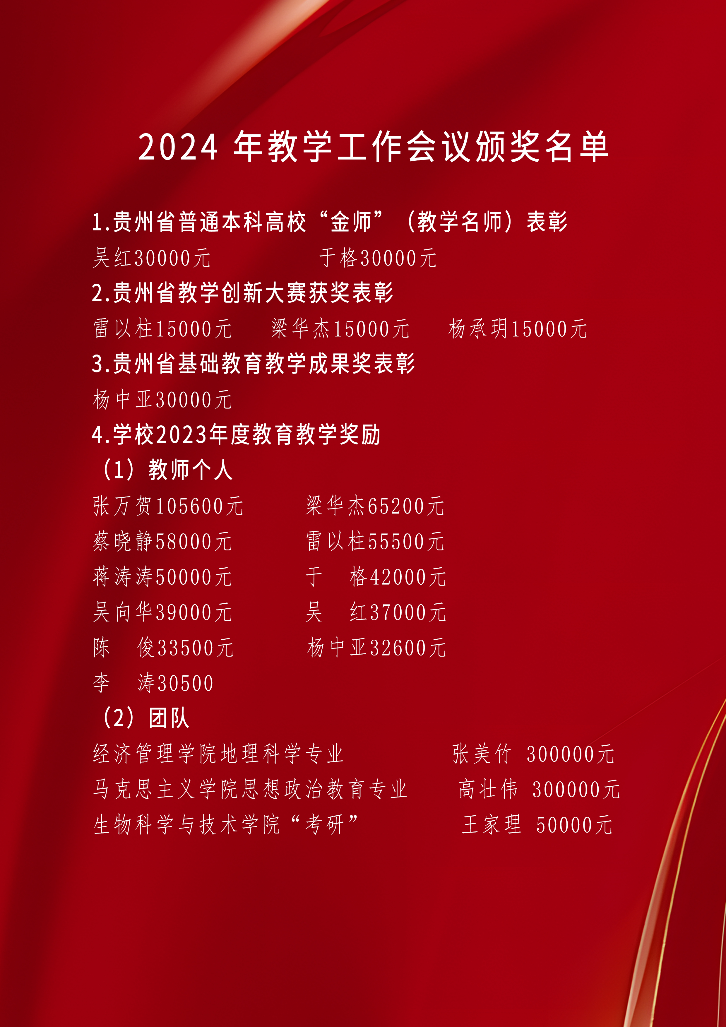 3月29日下午,bat365在线中国登录入口召开2024年教学工作会议,会上,对获得“贵州省普通本科高校‘金师’(教学名师)、贵州省教学创新大赛、贵州省基础教育教学成果奖”以及获得2023年度教育教学奖励的个人和团队进行表彰。