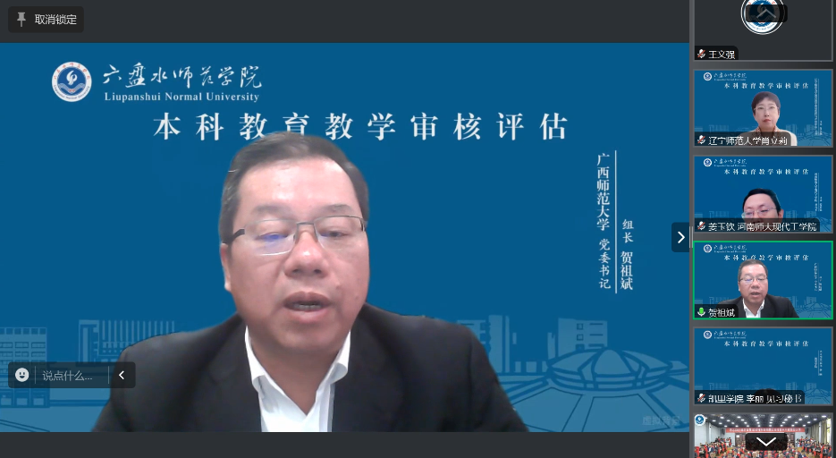 10月29日上午,学校召开本科教育教学审核评估线上评估启动会,会议采用线上线下相结合的方式进行。审核评估专家组组长、广西师范大学党委书记贺祖斌,专家组副组长、贵州财经大学副校长肖小虹等全体专家组成员,贵州省教育厅二级巡视员邓生井、高等教育处处长梁恒贵线上参加会议。线下同步会议在智学楼二楼会议室举行,学校党委书记周斯弼致辞,校长程绪权作学校本科教育教学工作报告。校领导李葆青、王际明、艾德春、费虹、张龙出席。