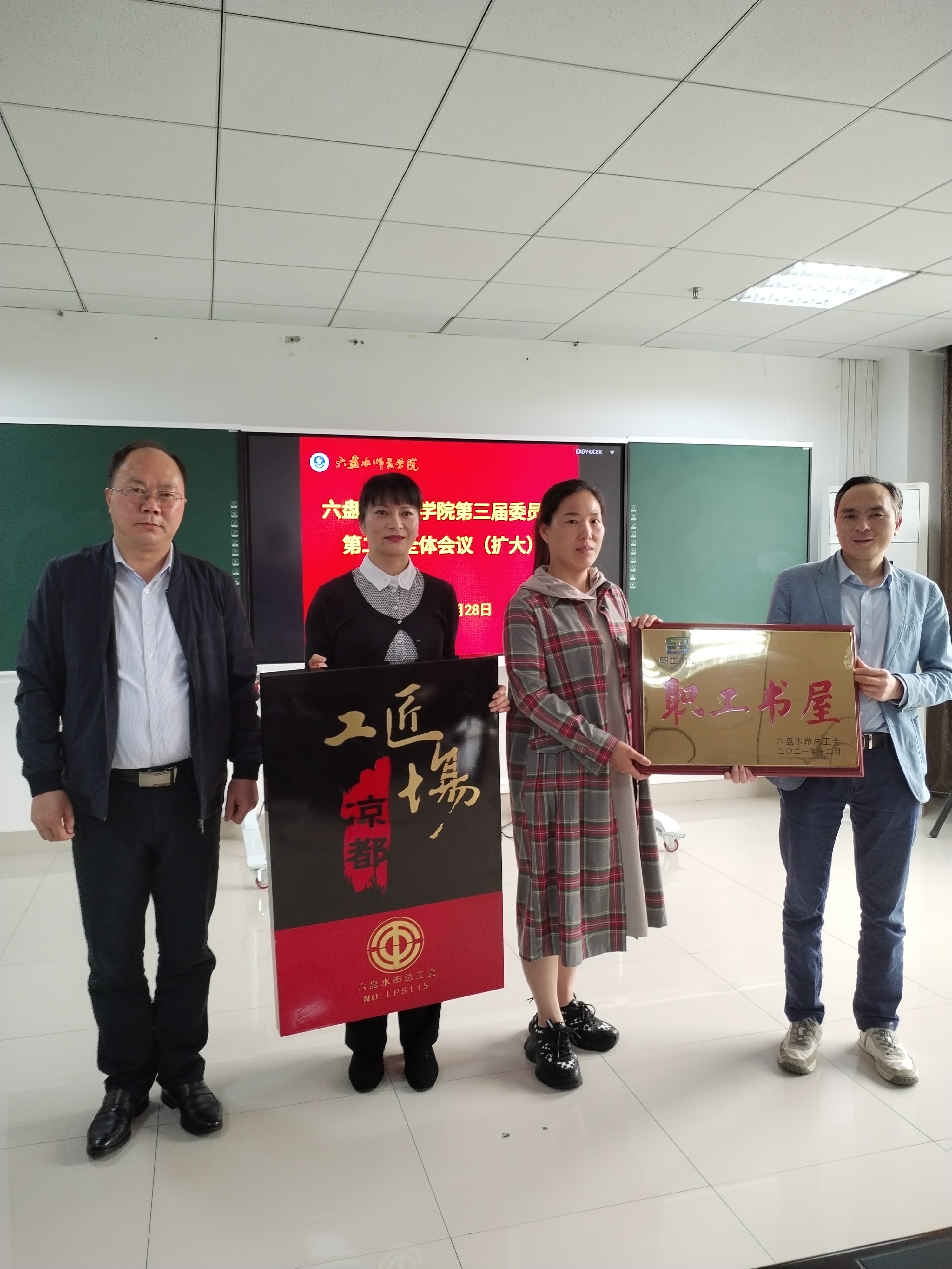 会议传达贯彻六盘水市总工会八届七次全委(扩大)会议精神和学校三届一次工代会、教代会精神,顾典宇与全体工会干部谈心谈话,传达贯彻《六盘水市工会向同级党委(党组)和上级工会报告重要工作制度》等制度文件、《2022年六盘水市工会女职工工作要点》《六盘水市总工会办公室关于创建凉都工匠场、劳模创新工作室、工人先锋号的通知》《六盘水市总工会办公室关于做好2022年度“职工书屋”建设工作的通知》,讨论二级工会工作职责、《bat365在线中国登录入口教职工代表大会提案管理办法(修订)》、学校工会2022年工作计划、教职工运动会及篮球比赛方案,为2021年度“凉都工匠场”“职工书屋”授牌。