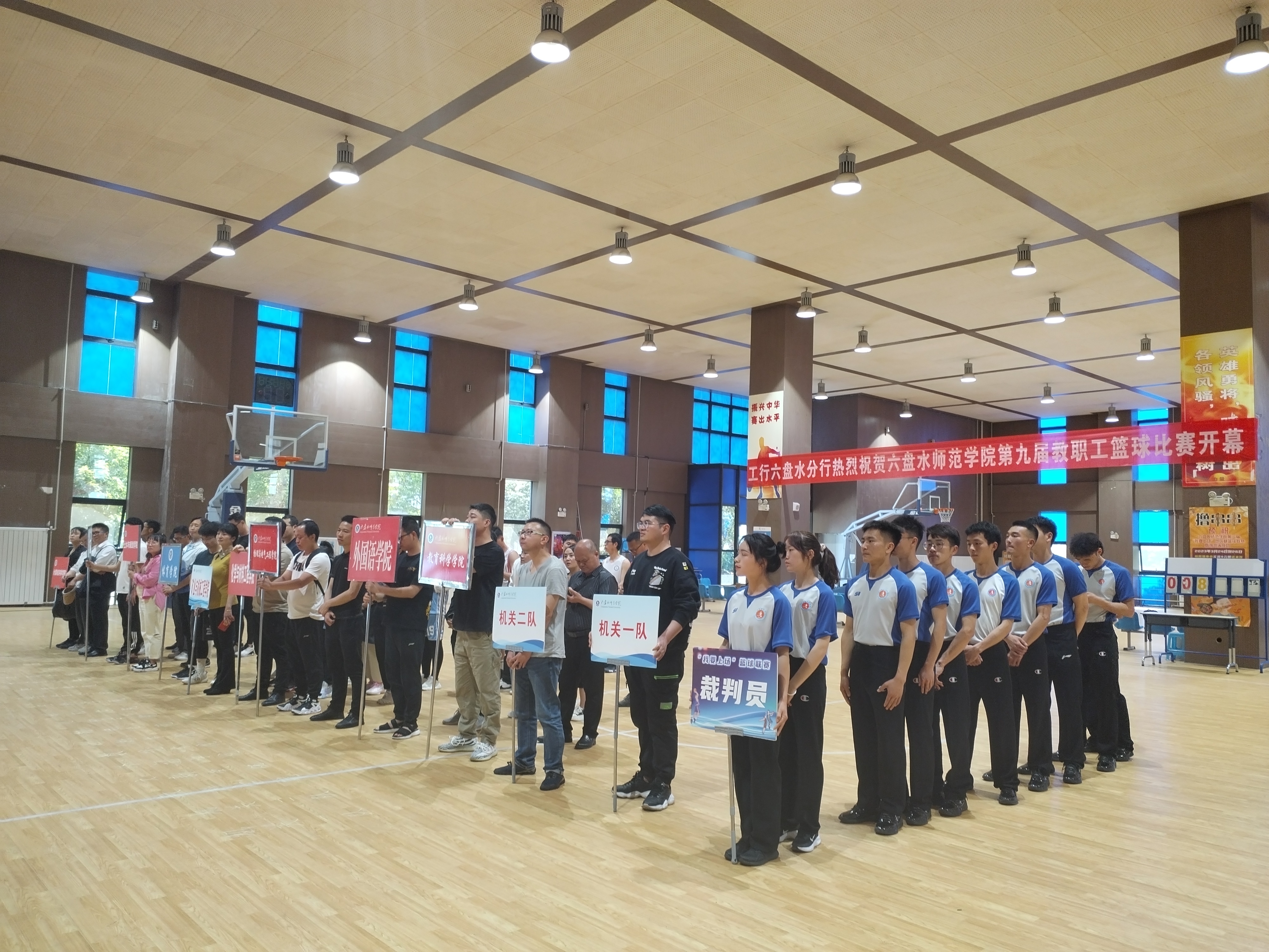 李葆青在致词中向本届教职工篮球比赛的胜利开幕表示热烈祝贺,向参与活动筹备工作的全体工作人员、各代表队致以亲切的问候!向给予本次活动大力支持的六盘水工商银行领导表示衷心的感谢!他指出,新的一年,全校教职工将全身心投入学校审核评估、硕士点建设、专业认证等核心任务。学校组织开展篮球比赛等职工文体活动,具体落实学校关于师生要“培育文艺和体育两个高雅爱好”,目的在于努力丰富和活跃教职工业余文化生活,使广大教职工在繁忙繁重的工作之外适当锻炼,维护身心健康,努力做到工作、生活质量两不误、双提升,提升幸福感。李葆青要求各代表队、全体运动员、裁判员、工作人员遵守比赛规则,保障本次比赛赛出风格、赛出水平、赛出道德风尚、赛出团结友谊。