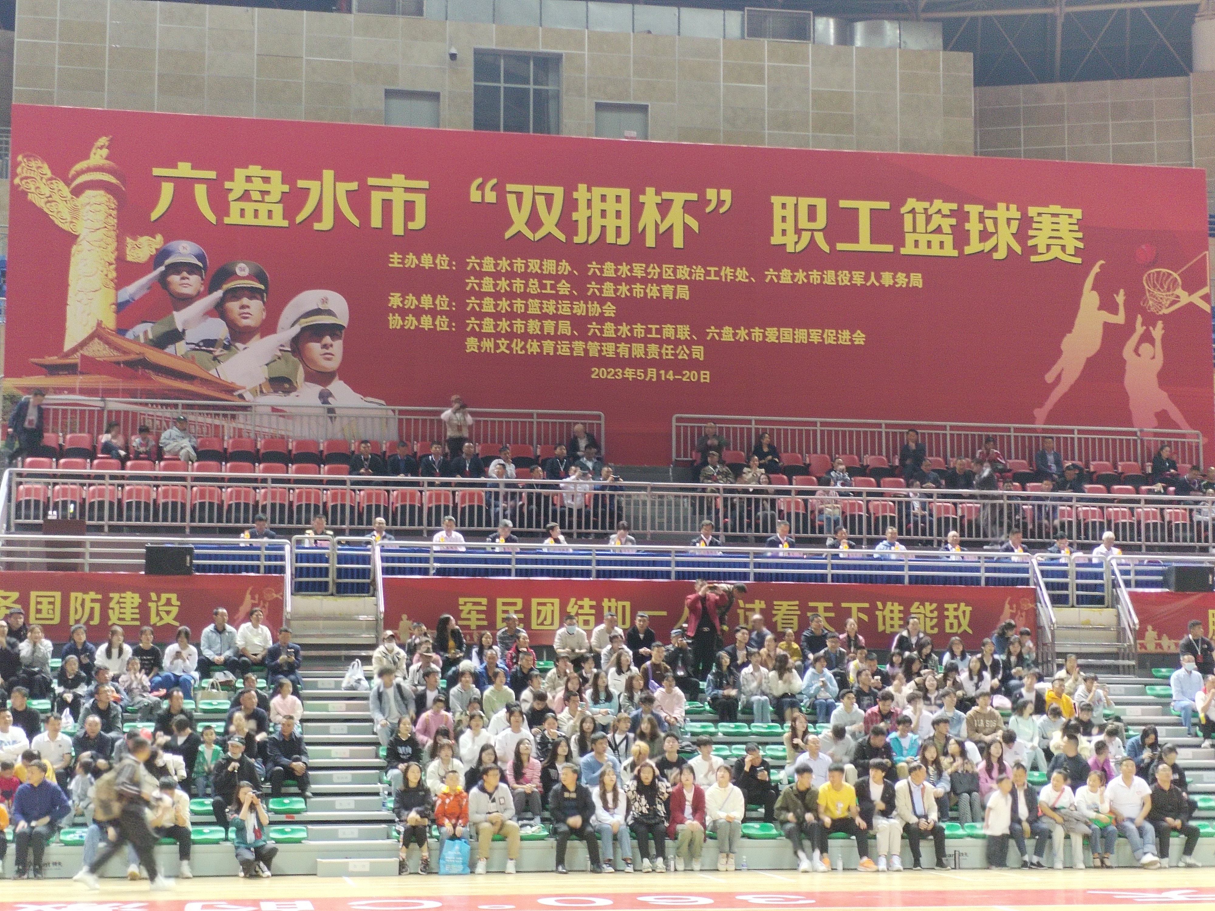 5月14日下午,由市双拥办、市总工会、市体育局、市退役军人局、六盘水军分区政治工作处主办,市篮协承办,市教育局、市工商联、市爱国拥军促进会、贵州文化体育运营管理有限责任公司协办的六盘水市“双拥杯”职工篮球赛在凉都体育中心体育馆举行。bat365教职工代表队、40余名志愿者、200余名师生参加开幕式。