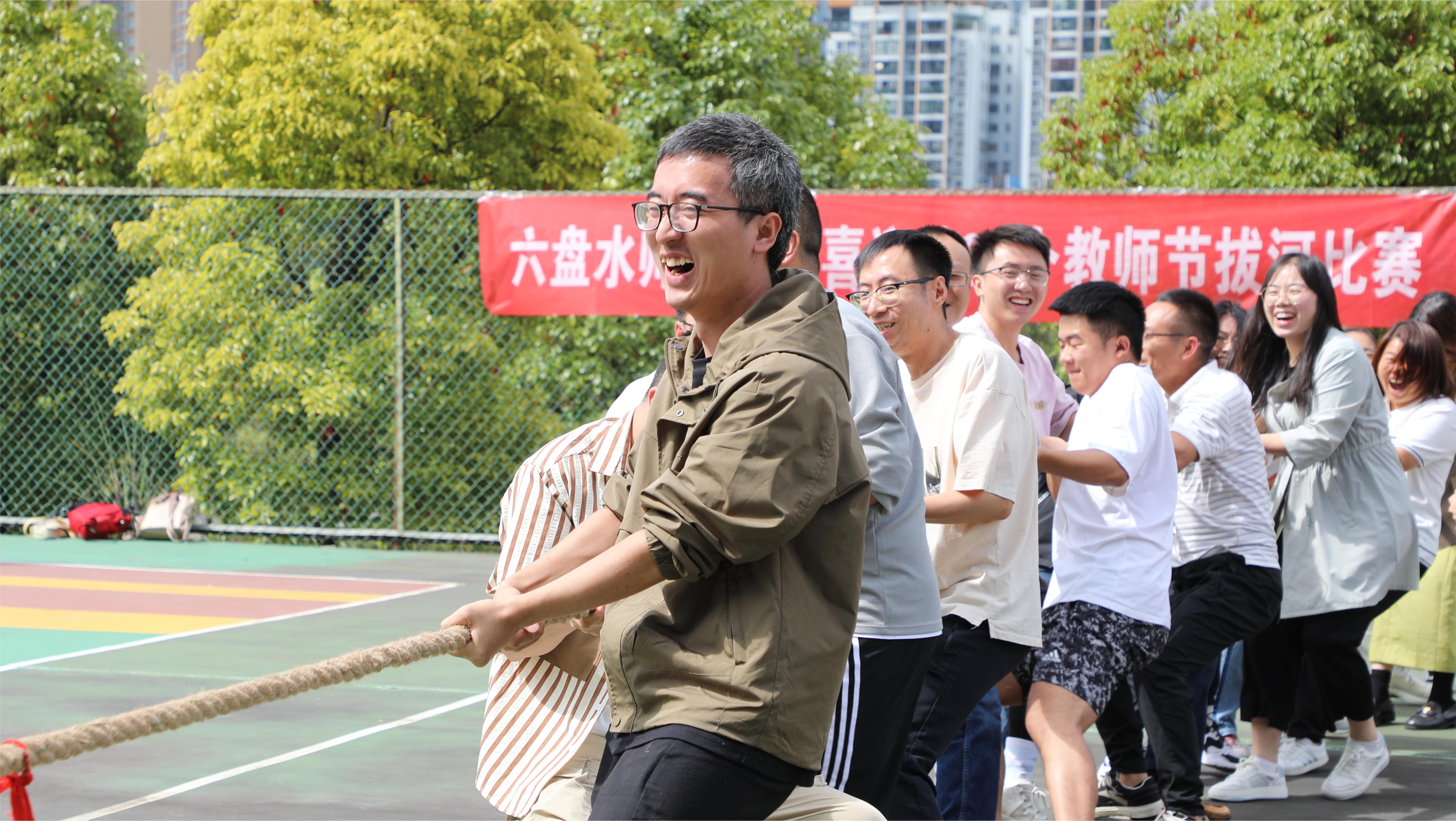 比赛中,各参赛队伍热情高涨,一声令下,绳索紧绷,指示标记的红绳在双方的全力以赴下左右移动。观赛教师挥舞着双手为参赛队伍加油助威。欢呼声、呐喊声、加油声,此起彼伏,赛场气氛欢腾。