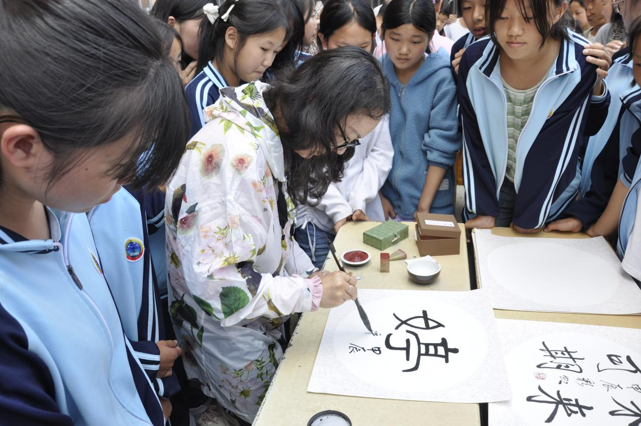 牛场中学学生展示师生现场创作书法作品
