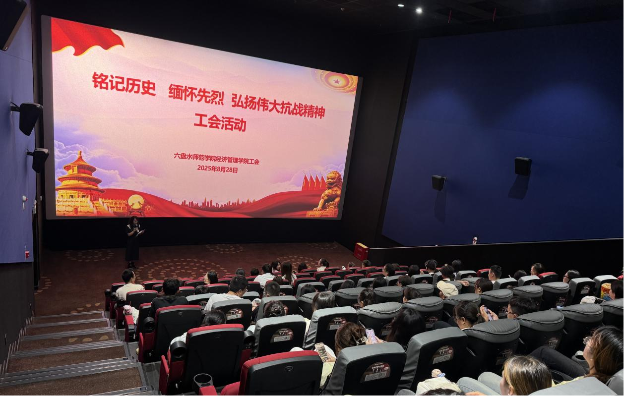 为深切缅怀革命先烈,弘扬伟大抗战精神,促进工会会员进一步筑牢家国情怀、增强历史责任感,2025年8月28日晚,经济管理学院工会组织全体工会会员在六盘水万达影城举行“铭记历史 缅怀先烈 弘扬伟大抗战精神”主题观影活动。