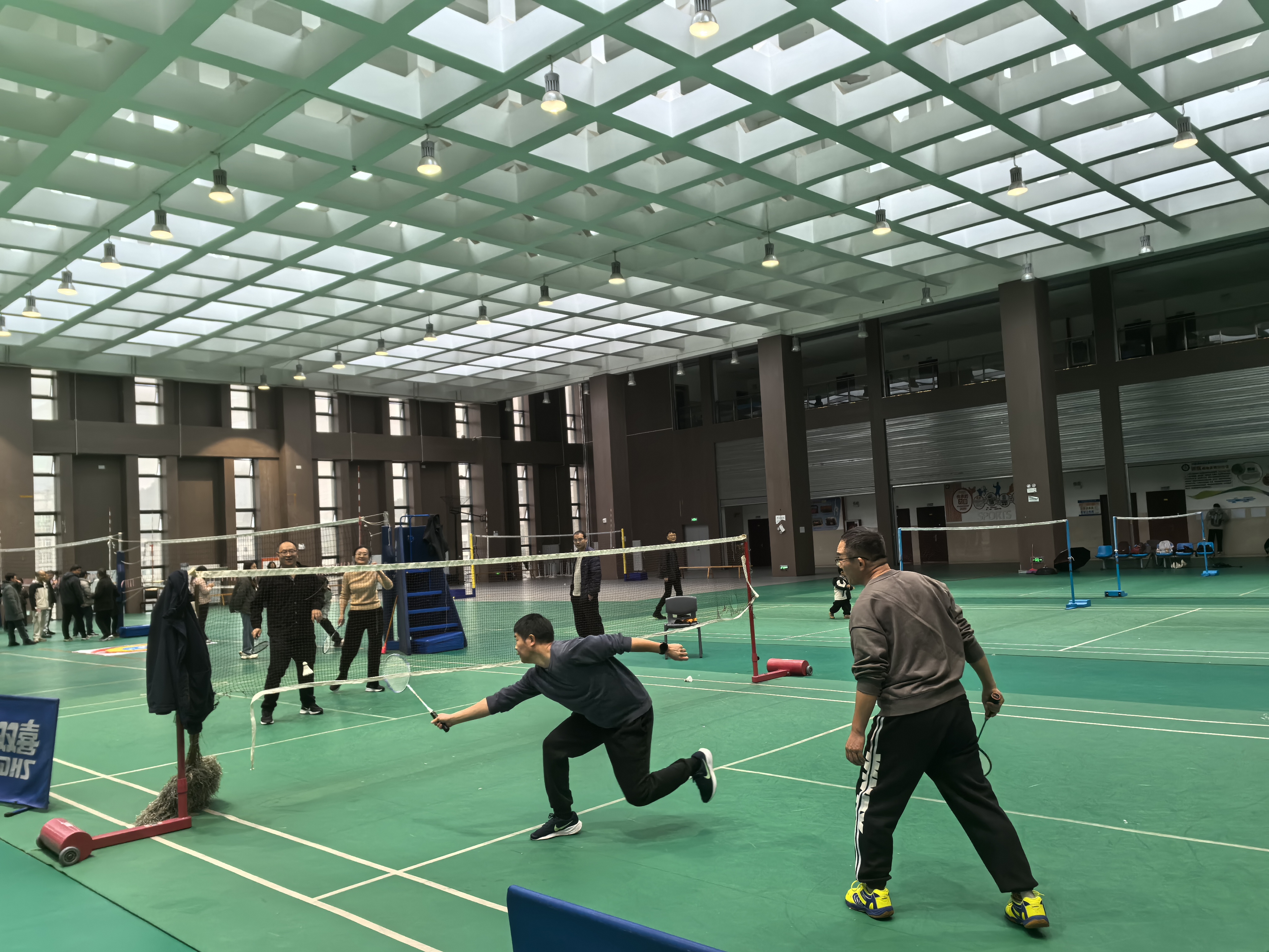 男女混双羽毛球赛激烈进行,选手们身姿矫健,步伐灵活,时而大力扣杀,时而轻盈吊球,充分展现自身球技和拼搏精神。场边的观众也热情高涨,不断为选手们加油助威,欢呼声、喝彩声此起彼伏。比赛不仅增进了教职工之间的交流与友谊,更激发了大家积极向上、勇于挑战的精神。